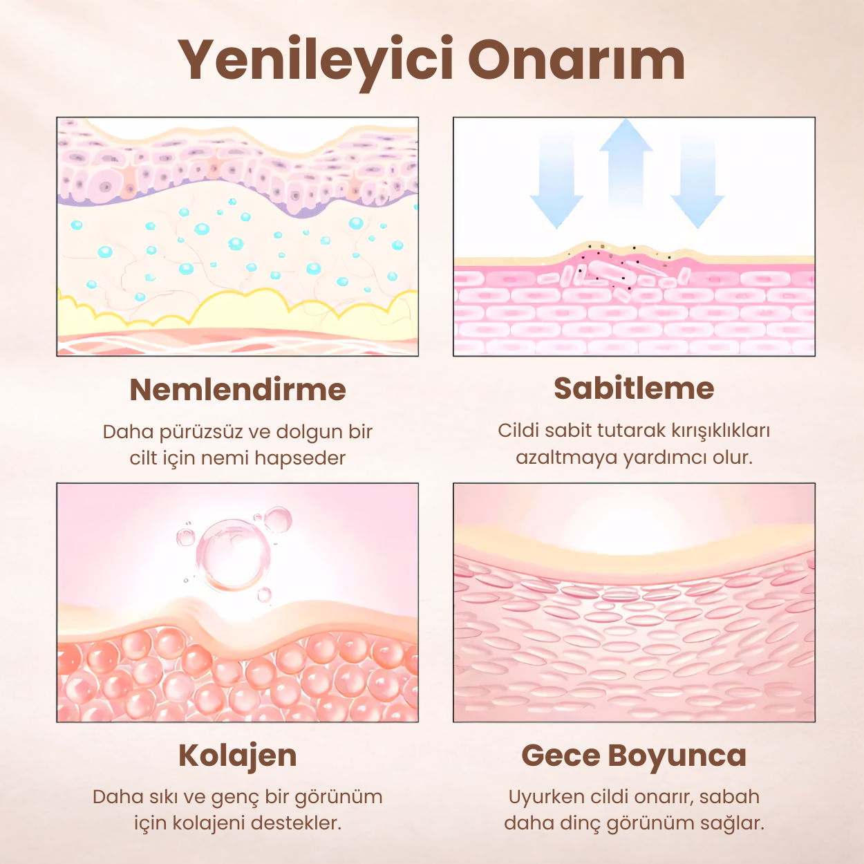 Ek bilgi: Bant, gece boyunca cildin bakım ürünlerini daha iyi emmesine yardımcı olur.